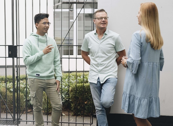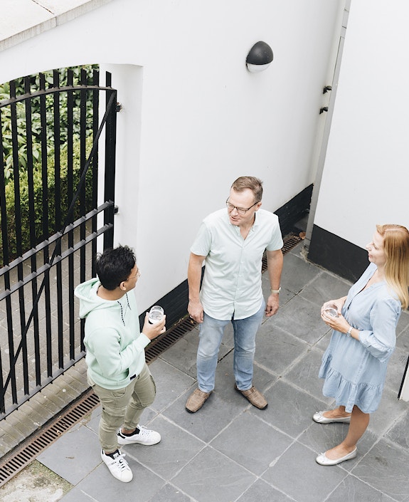 We groeien de laatste tijd behoorlijk hard, dus het wordt steeds belangrijker om regelmatig leuke dingen te doen met het hele bedrijf, zodat je niet alleen je eigen team, maar ook de collega’s uit andere teams direct goed leert kennen. Daarnaast lunchen we elke middag samen in de kantine en bij mooi weer in onze binnentuin.